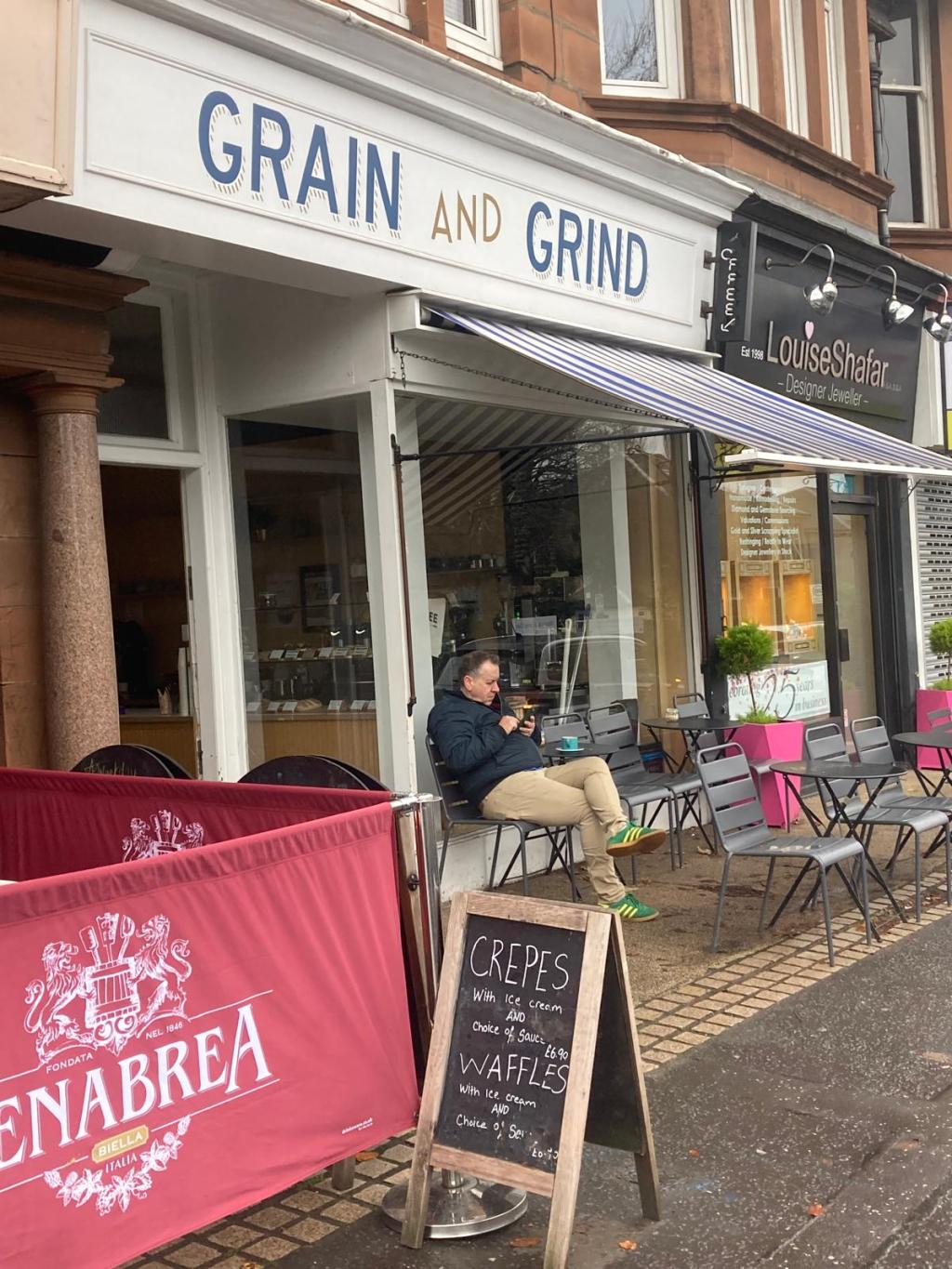 Giffnock. Grain and Grind. Fantastic. That’s not me outside by the way. My mother-in-law doesn’t approve of grown men wearing ‘pumps’ outside the house.