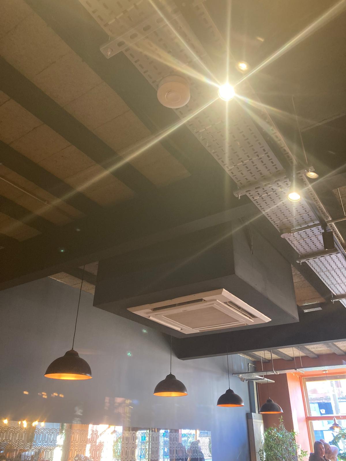 The Laverockhians have done their best with a space that was likely a hairdressers previously. Deep and rectangular with a run of padded benches and tables down one wall, tastefully lit with retro-element shaded lamps and a copper mirror. Comfy chairs, a few high tables, impressively clean loos. The obligatory dark green matt café paint is here but here’s a nice feel inside. Then you look at the high ceiling. What do the pensioners enjoying a pretty innovative menu of café dishes with a twist like Eggs Benny (work it out) with chilli oil think when they look up? Industrial lighting runs, a huge aircon unit, exposed concrete slabs, spotlights, cables… It looks like the interior of the spaceship Nostromo where the crew are hunting the Alien…