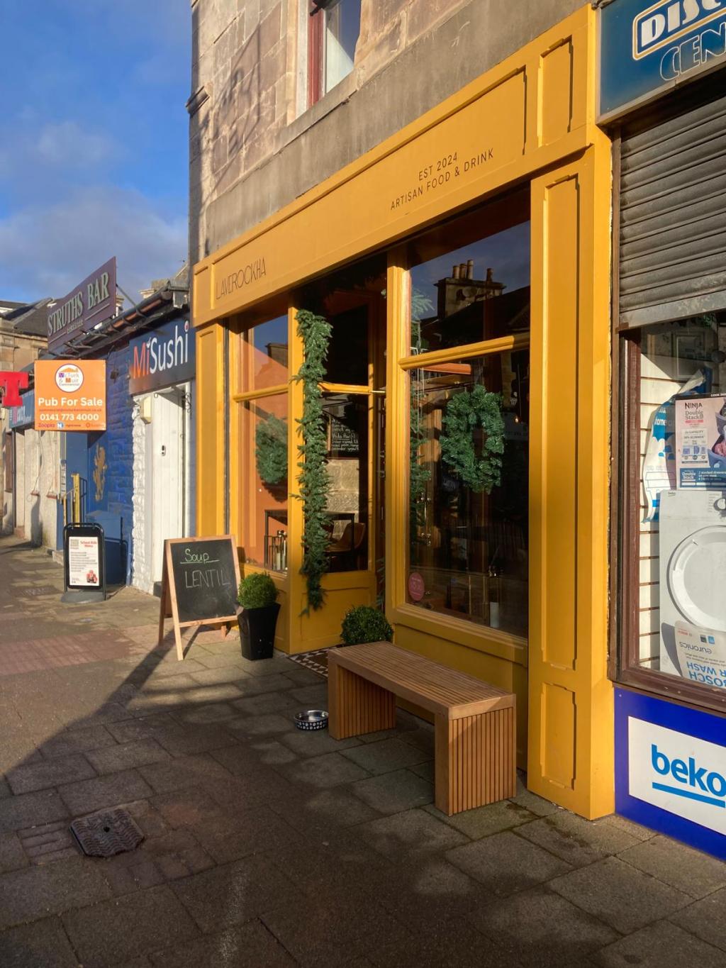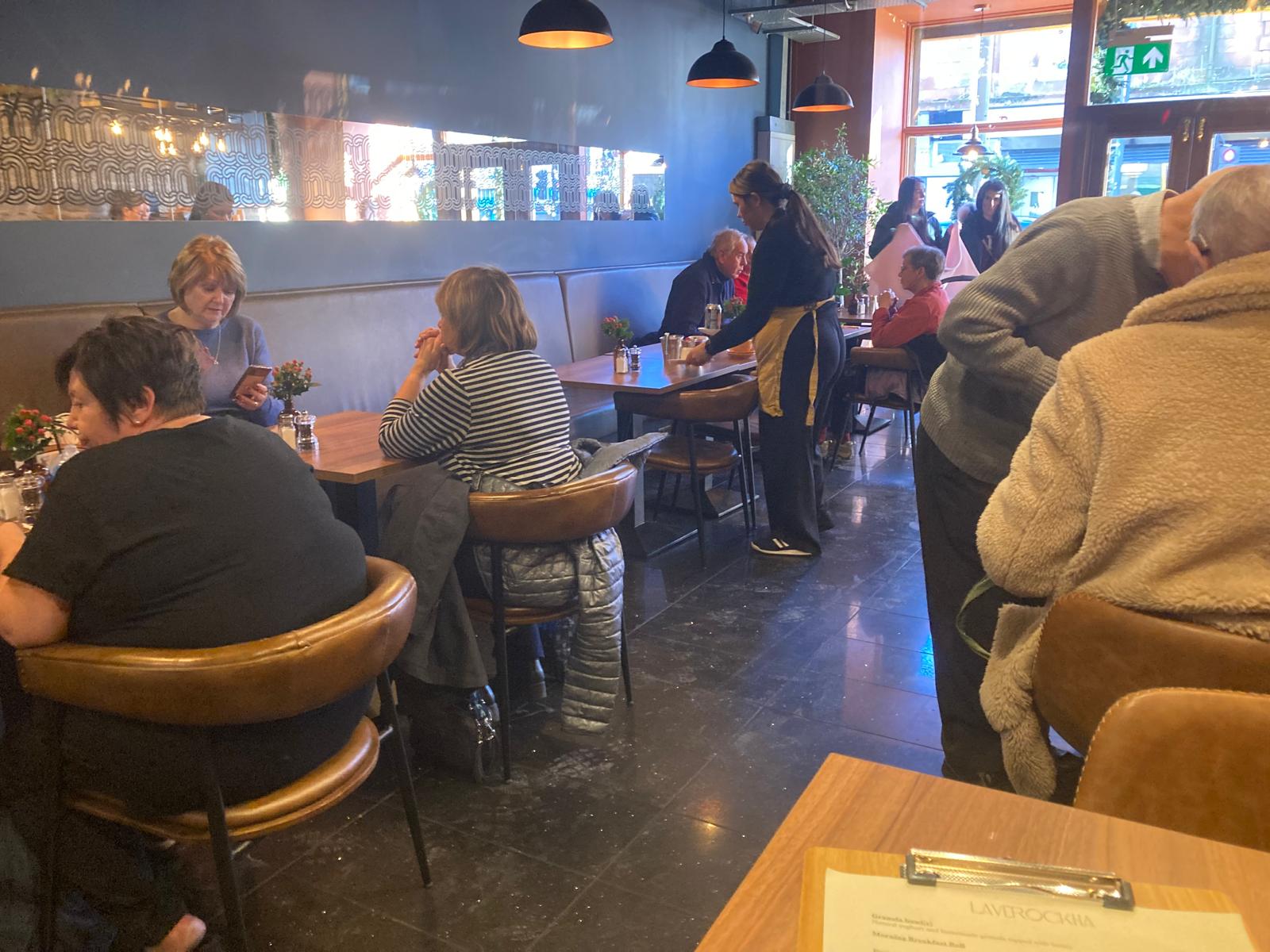 Union Street is teetering between chainstores about to flee, charity shops and pound shops on one hand. On the other there is an active looking community centre and innovative local businesses such as the recently opened Laverockha. Which is close to the free car park and there are plenty of spaces nearby. The outside of Laverockha is painted English mustard yellow. Looks good. Inside it’s busy with OAPs and mums with babies and toddlers. Service is immediate. There are loads of staff and they are working away. This is a friendly, busy place but with a relaxed feel. You can be served fast and get back on the road or linger.