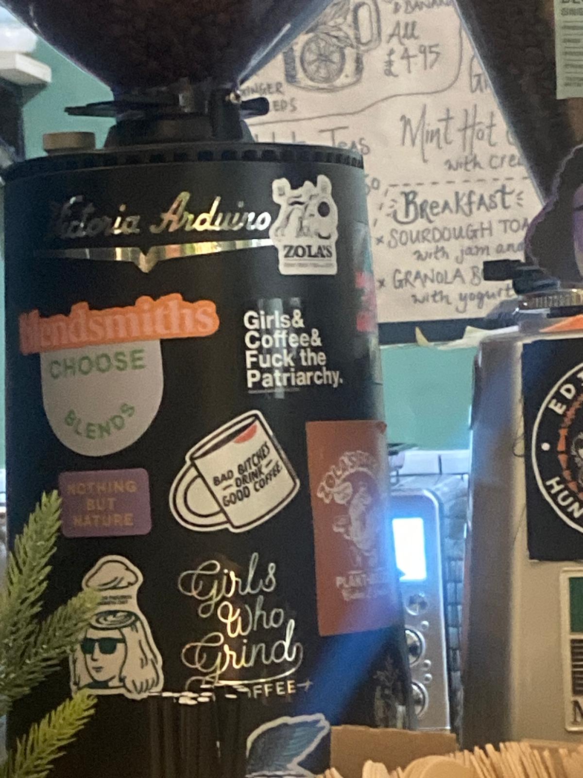 Prices are very reasonable but I feel the only way in which the patriarchy can reassert its vice-like grip and eldritch influence is for me to point out that coffee, not that the coffee but also the cup and saucer are not very good, they are, but perhaps the coffee blend itself is….not that individual. Oh.