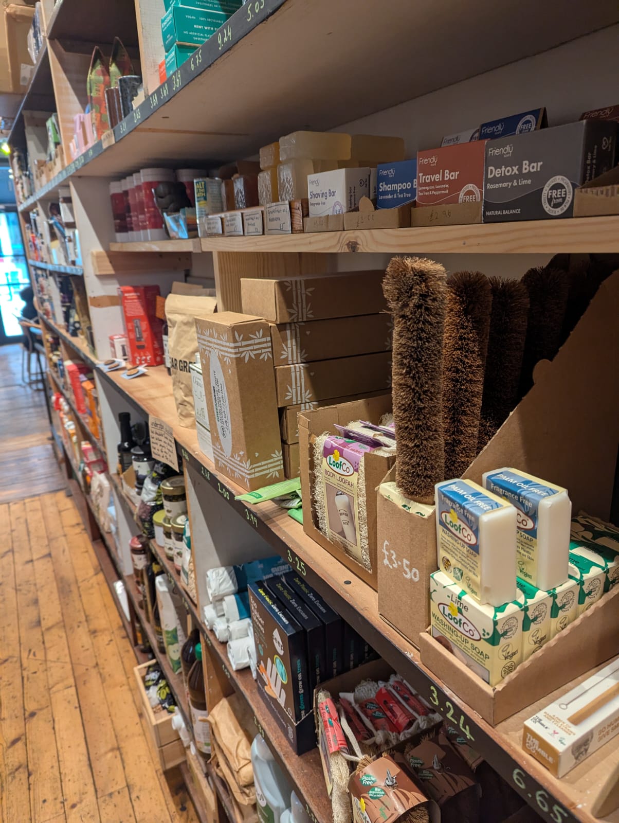 Prices are reasonable. Staff are nice local kids. One wants to stay inside The Wildcat and pass the time. Not only because one don’t want to go back out on the High Street. The Wildcat sells their own coffee, and a shelf load of ethically-sound bits. The savoury food looked good but having already had a large vegetarian breakfast al vano neither of us could do justice to a large vegan one an hour later.