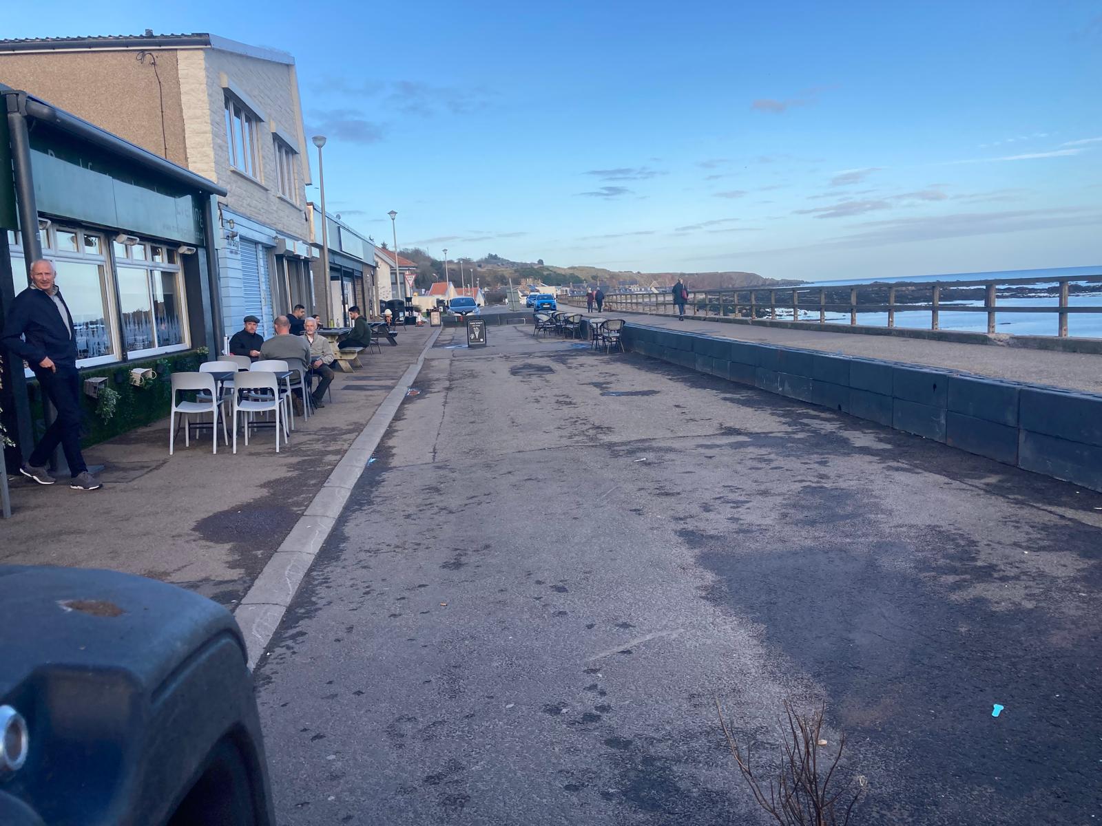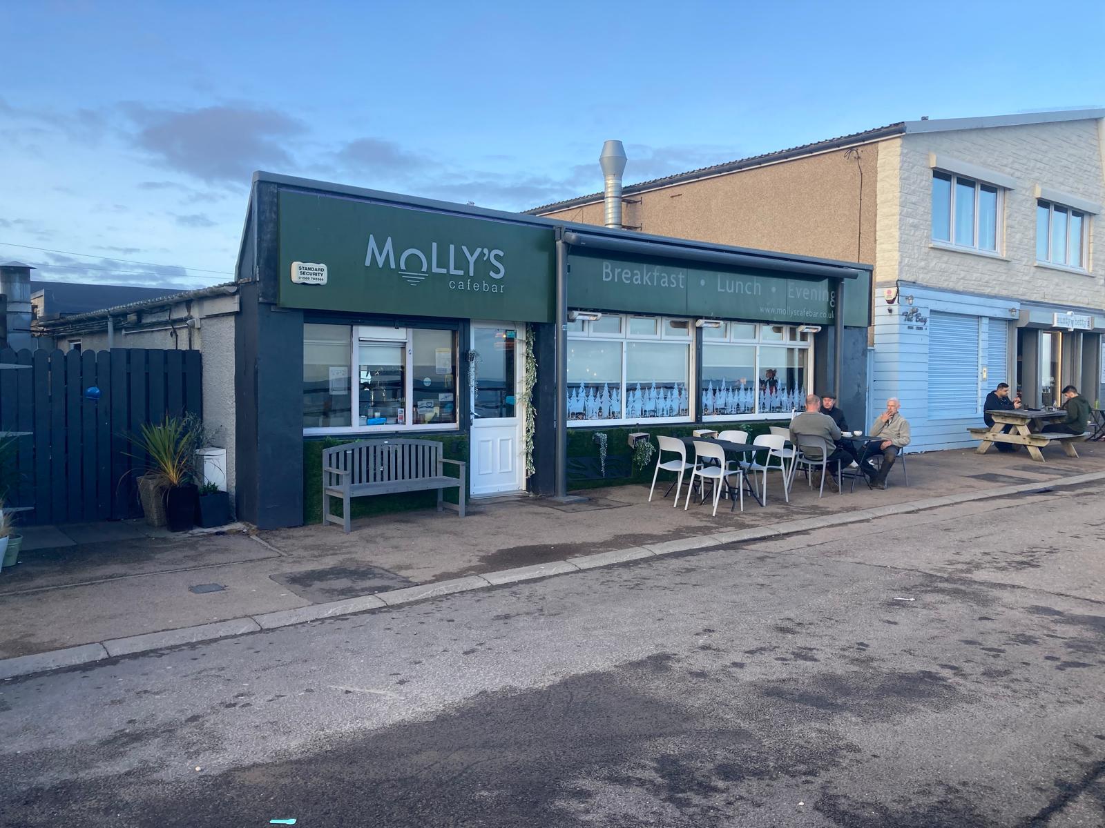 As the filthy lucre ebbed out of Aberdeen, Stonehaven seems to have slipped from a quaint place to live with a short commute to work to a town teetering on the top step of an irreversible decline. Lots of flats for sale and empty shops. But for the moment Stonehaven still has a surprising amount of amenities for a small town. The seaside pleasure vibe is still lingering. I found 2 chippies open at 7.30 on Monday night in November, each with an adjacent ice cream shop, also open. The harbour has two pubs and a fish restaurant in the old Toll house but I prefer the beach and promenade, with its air of a mini Portabello. One can happily eat chips watching the sea provided you keep an eye out for violent gull chip-bandits, but I already had my eye on Molly’s Café Bar. This is a one-storey glass fronted shack facing the sea, near the open-air Lido – a Stonehaven idiosyncrasy that also survives. There is a second café/ice cream place next door and a café in the adjacent soft-play area but a PMiaV can only do so much. Enjoy copious free parking right along the seafront at the Lido end. Camper vans and the odd lorry are parked here overnight so you can take your time.