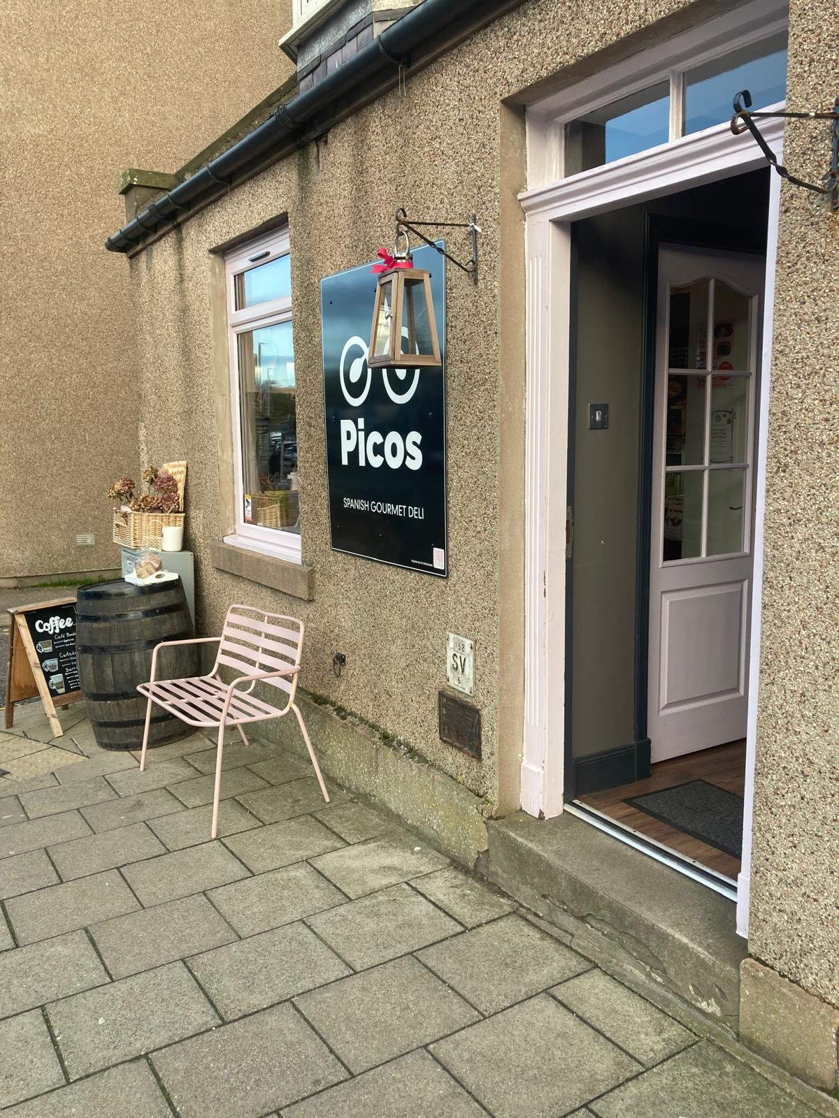 I stroll along the concrete sea defences that prevent the beach disappearing. It’s busy with parents, kids, OAPs and dog-walkers. Pebble-dashed pensioner hutches face the sea view, some are housing association but a lot of the private ones are for sale. High turnover. Fortunately my musings on mortality and the human condition were interrupted by an A-board announcing, ‘Picos Spanish Deli’. Say no more. I walk up a lane past the long-converted net stores and onto the main road. Picos is on a corner, one room, a bit like someone’s front room or the way shops used to be. Picos does takeaway coffee and is a cultural hoard of interesting Spanish groceries. The amiable proprietor and I discuss mojo rojo hot sauce, why he says it’s better in the Canary Islands and the fact that this particular mojo rojo will improve almost anything. I get a perfectly acceptable takeout double espresso, two bottles of sauce and am pleased with life.