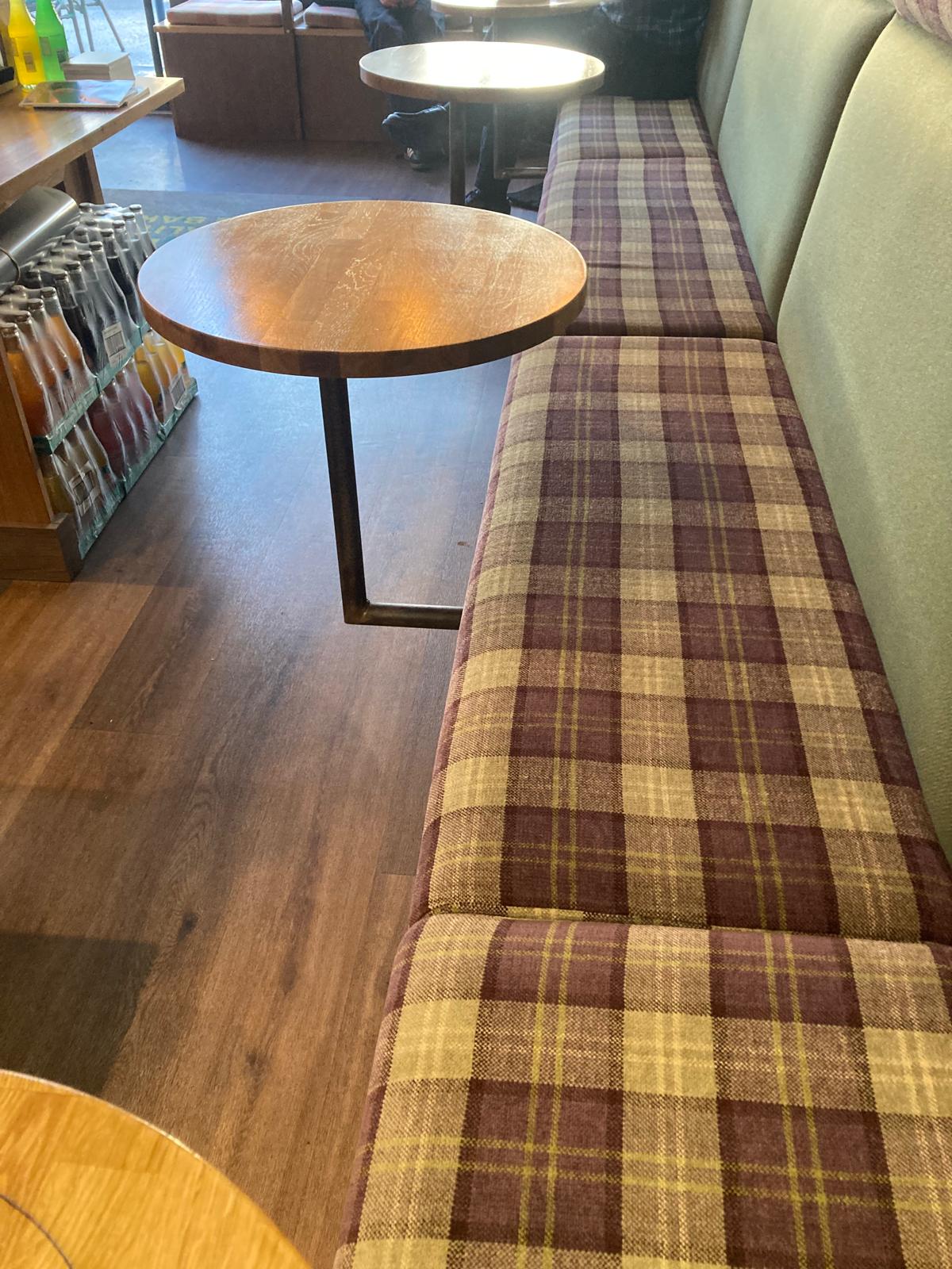 Kennoway Coffee just seems to be ahead of the game in almost all of the key coffee shop aesthetics and delivery of the essentials. There are no tables, instead the high, glass-fronted L shaped space has an extremely comfortable L shaped banquette in a tasteful fabric. Tables sprout from a single root attached to said banquette in a practical and chic manner. The cups have no handles! Instead they use a thumb grip. Marvel at this. *Photo to follow. Open your mind to the possibilities. Reader, it works. The excellent coffee is served not too hot and you can choose your blend. One can also buy a range of their beans and a few coffee-making accoutrements. The sweet baking and sourdough toasties are generously sized and superb. Yes, there are nods to the inevitable coffee-shop aesthetic of walls stripped back to the brick, laminated panelling and downlighters but here it works. The loo is spacious. An essential quality for many situations you may find yourself in.