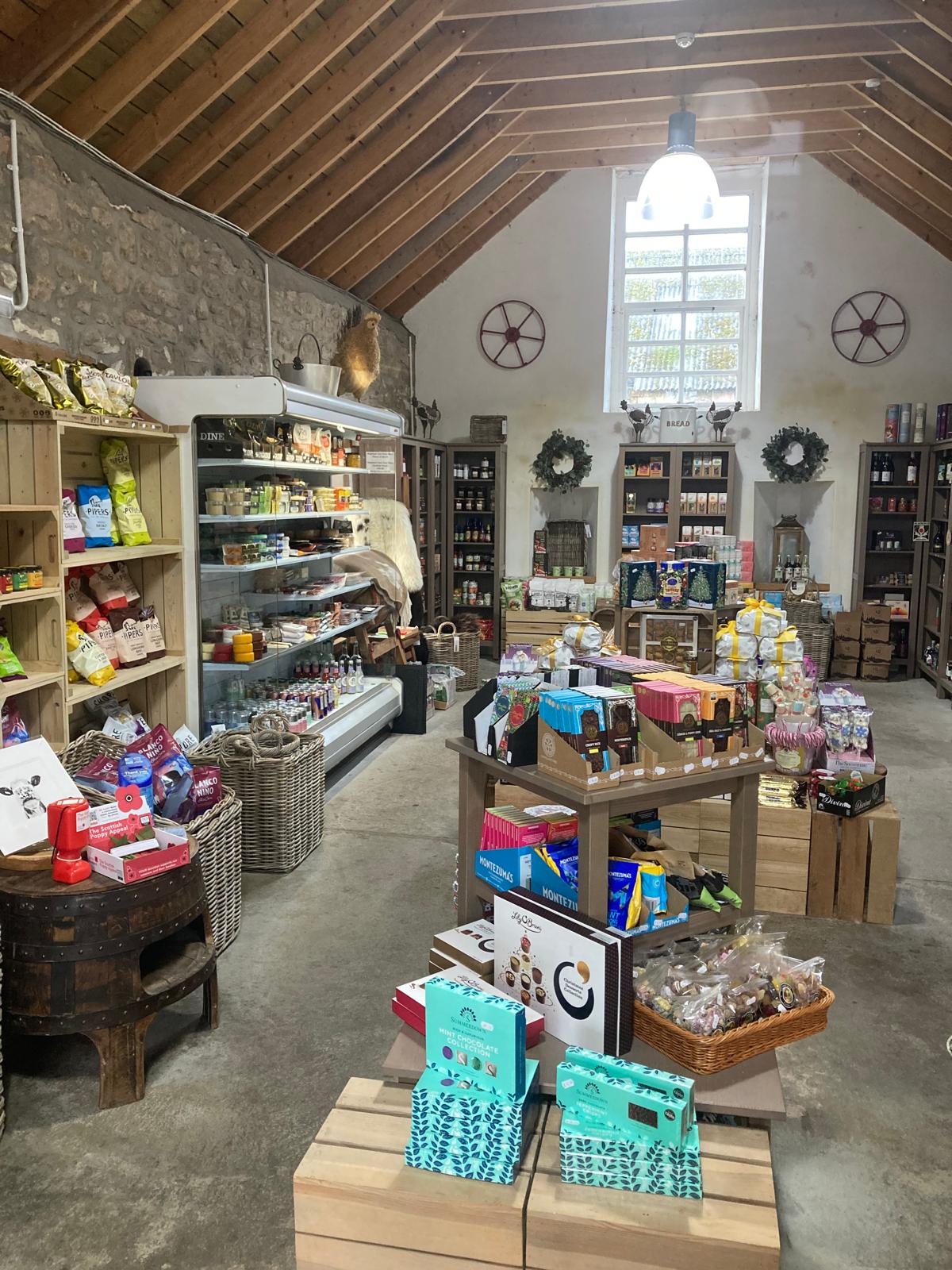 The farm shop is a tastefully converted byre. Not the repurposed agri shed that farm shops used to be, nor a huge modern hanger/supermarket like certain places on the A66. Auchentullich Farm Shop is in fact a well-stocked and fairly priced deli. Inside is a spacious double height room with restored original trusses that is well presented but not overly so. The poured concrete floor and stone walls are attractively bare. It’s a shop you actually want to shop in. There’s a log burner going. Above it, scrawled on a blackboard by a person (Katie Morag?) who was no doubt annoyed by distracted visitors who might put their hand or even sit on a red-hot iron stove, has written, ‘Hot. HOT. BURNIE !!!’
