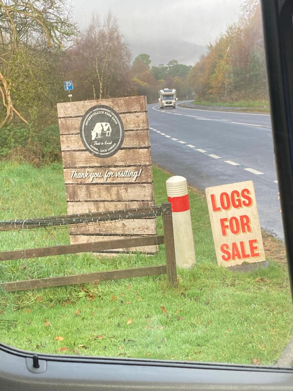 The sign outside Auchentullich Farm Shop on the A82 Loch Lomond side, offers ‘Coffee. Ice cream made with our own milk,’ and ‘Logs’. This manages to be both alluring and understanding of human needs. A swift deceleration and gearing 5 down to 2 with a sharp turn will bring your van into the carpark. Or into the path of a speeding log lorry or drifting motorhome.