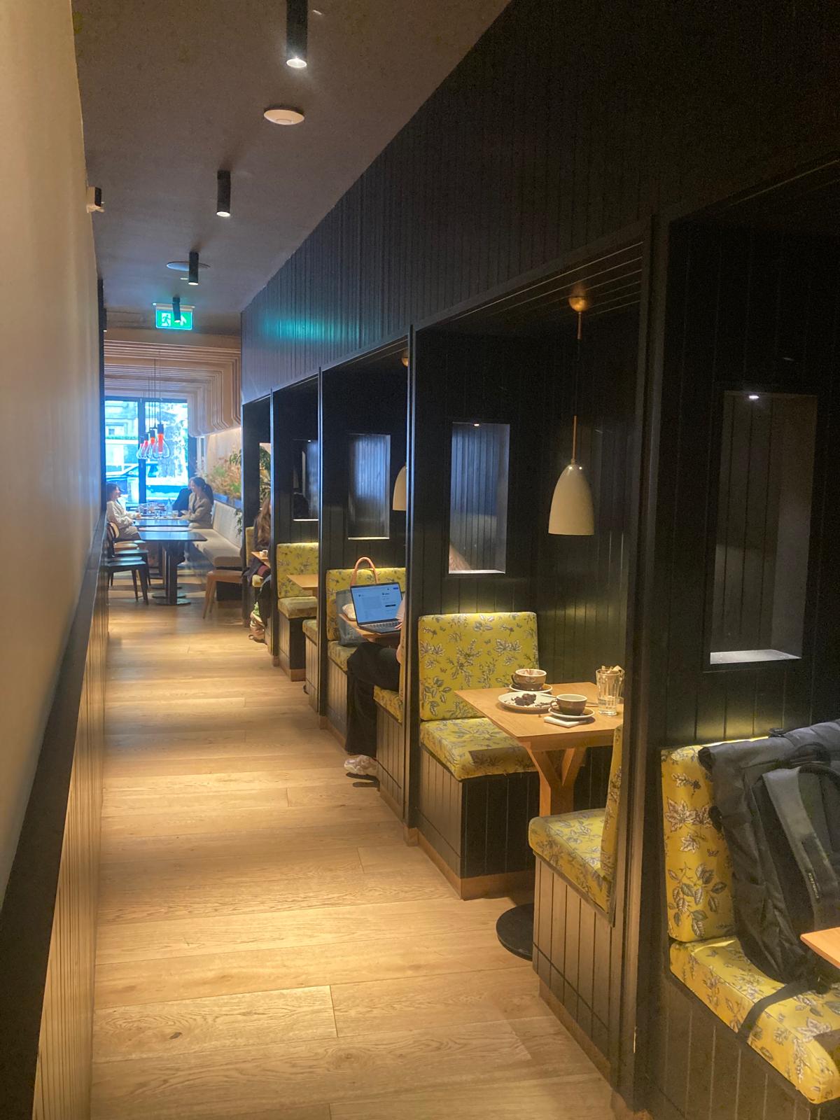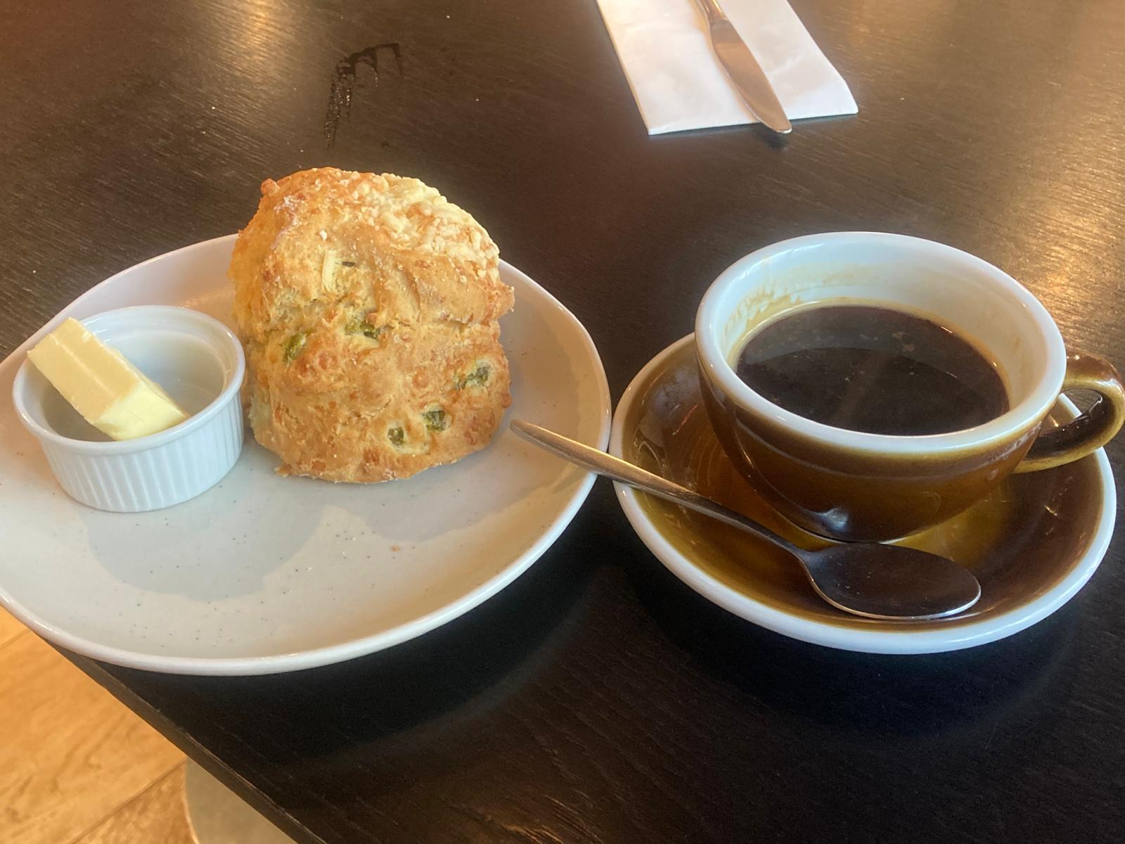One hears a lot about the supposed superiority of certain areas of Edinburgh from certain Edinburgh acquaintances and 2 Children does seem to be from a better, brighter future. The café is like the interior of a vast spaceship with a ribbed ceiling and open facade in the cavernous docking bay, alien plantlife on the walls and a whole new level of futuristic lighting technology. Giant teleportation stations hang from the ceiling ready to beam you to another space quadrant or perhaps just Morningside. On the way to the human bodily waste disposal units there are comfortable individual darkened carrels for suspended animation. The ship’s stylish human avatars do not seem to operate by terrestrial café rules: I could have had brunch at earth time 16.21 as I briefly toyed with doing. Very good coffee came preternaturally fast (teleported) and was followed by a jalapeno cheese scone of such fantastic taste and quality that the ship’s mainframe AI must have been involved. Prices were the norm for Stockbridge in the early 21st Century and utterly acceptable for this quality. The only compromise in 2 Children seems to be the café tables and chairs, which have been sourced from the Jupiter branch of space-IKEA. I managed to find an Earth-gravity space-banquette to recline upon where from I looked out into void and kept an eye on the van through the huge glass viewing windows of the bridge.