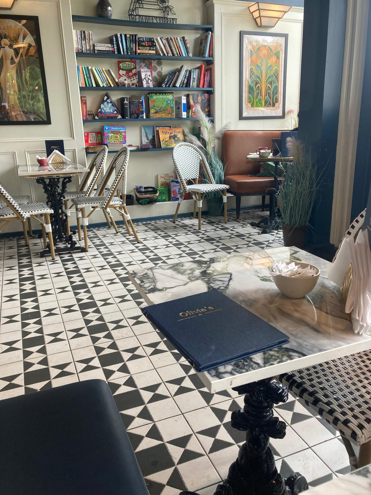 Olivia’s is also not a pretentious café, just a relaxing one. There are board games and books to read, arched windows to stare out of, design flourishes to appreciate and no hurry at all. Punters amongst the standard-issue civilised Hyndlanders included people reading actual books and a couple of independent P6 girls having milkshakes. They move on to pet a tiny Frenchie who has having tea with its human.