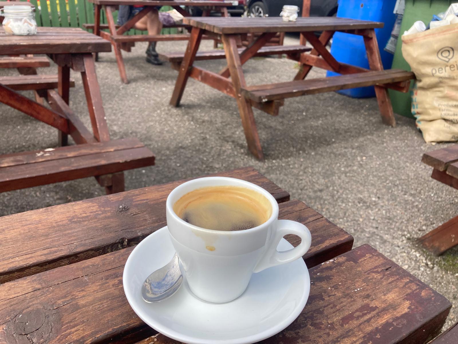 This is impressively stocked with what Sancho and I call nicey things to improve the general nourishment tone in one’s van. The chatty staff sold me a decent enough flapjack and an I would surmise Brazilian coffee. Possibly Colombian. £6 for the pair I think. The coffee and flapjack, not passing South American chaps. Drinks are served in takeaway cups although you can sit outside at basic tables. Which was lovely in the sunshine. Although I must remind you of the words of a wise Highland pal. In summary; all ideas, plans and innovations which seem to be inspired when the sun is shining in Scotland must be reconsidered in the depths of a dark winter with horizontal rain.