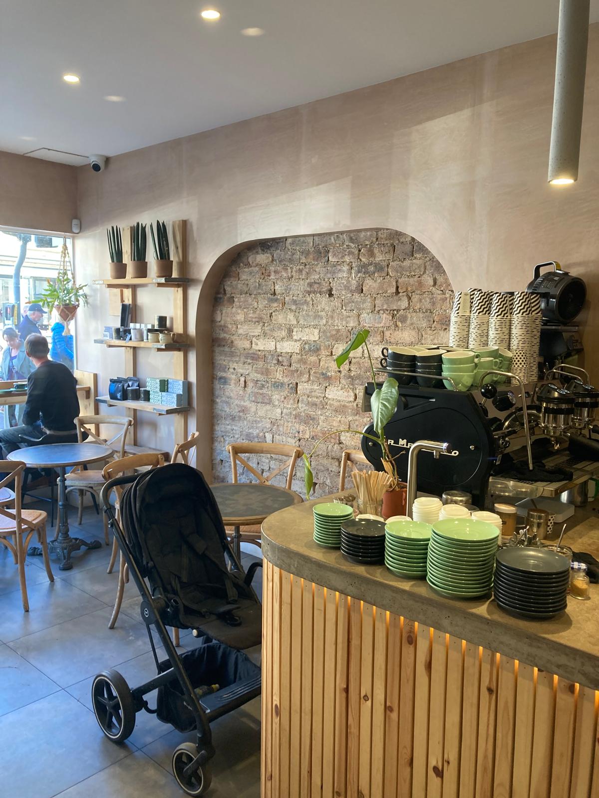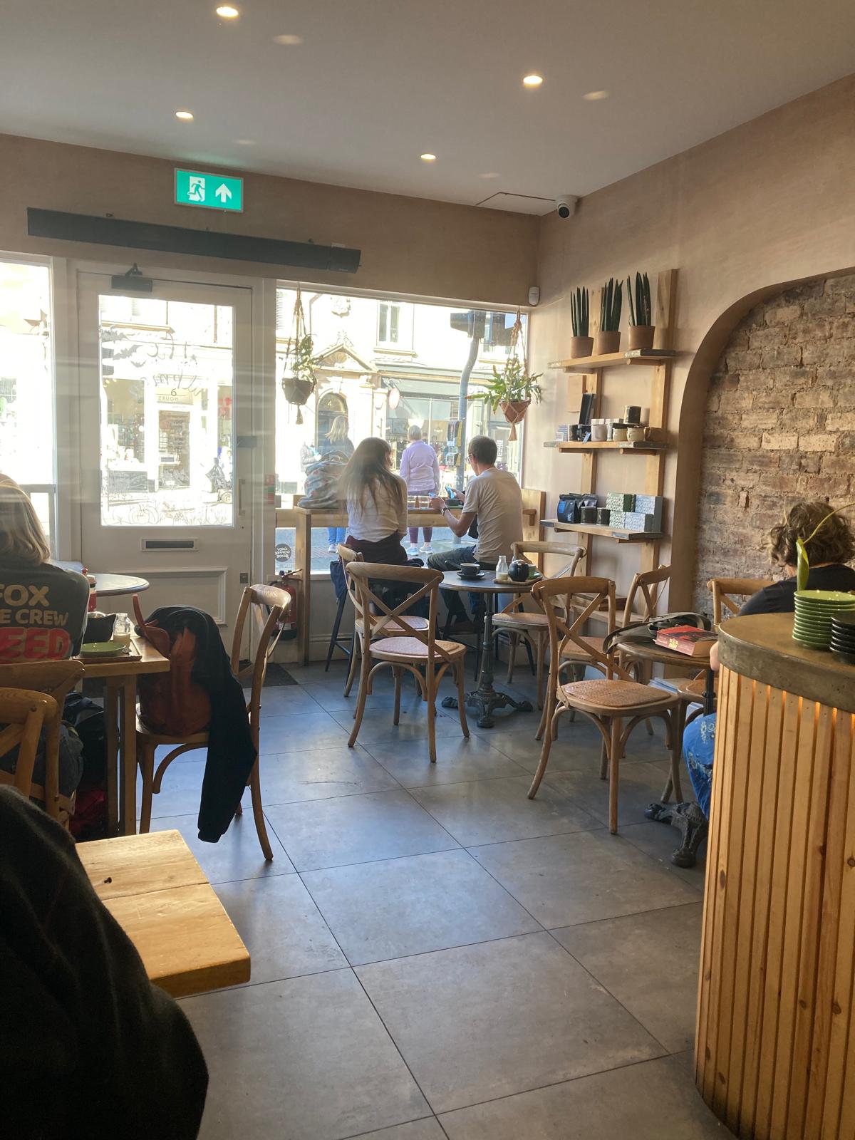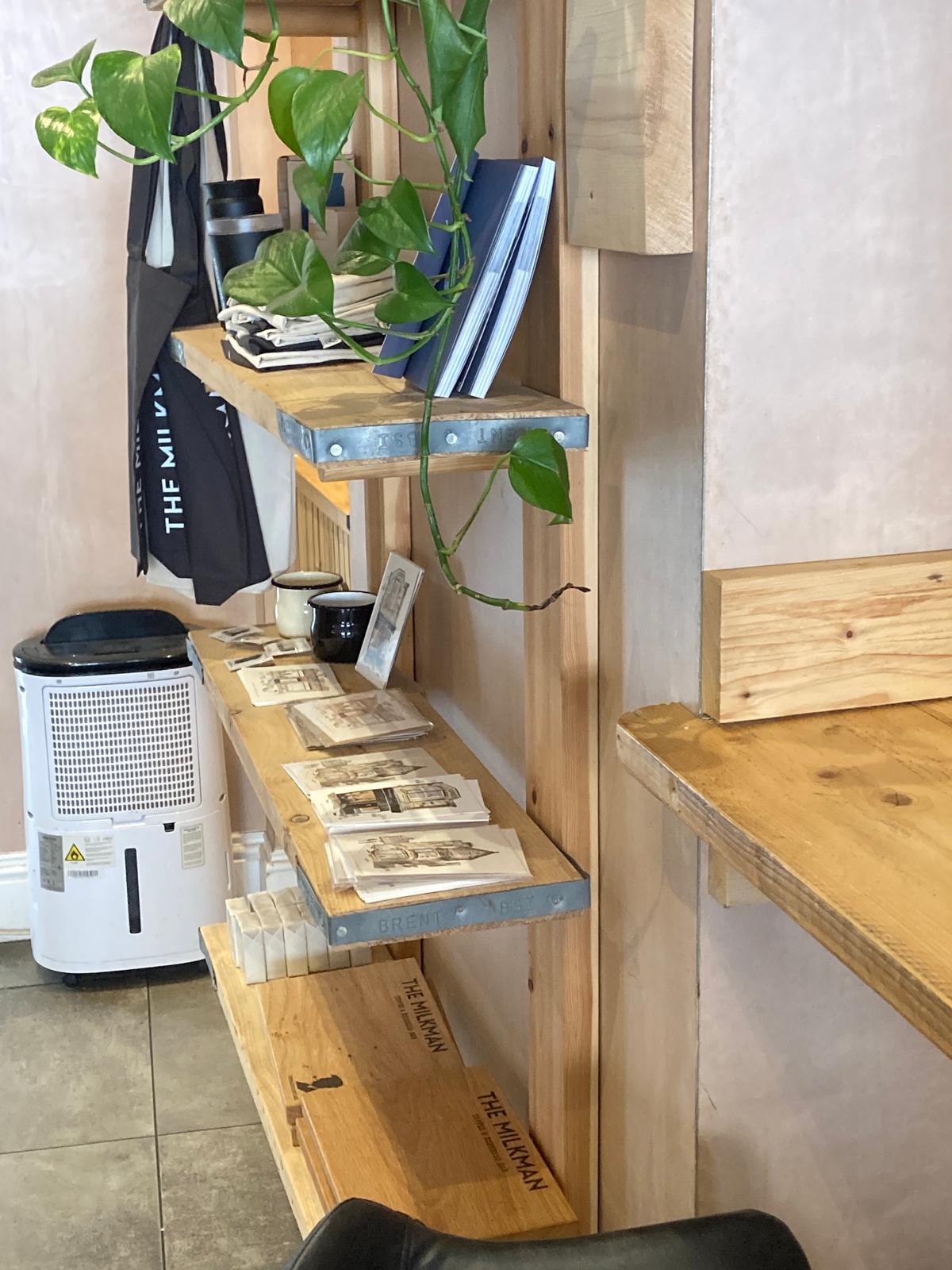 Perched on a chic leather stool at my scaffolding board counter, the quiet, peaceful ambience of the Milkman calmed my oft-savage pre-refreshment temperament. I appreciated the bare pink plaster in front of my face, the clean pale wood of the counter and the interesting but not overloud music wafting by. The crockery was most pleasing. Contentment filled my heart. And all for £6.40.