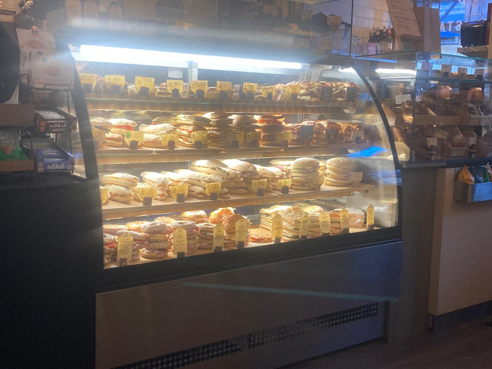 Being dense, and not yet in a New York State of Mind, (Alicia Keyes version not Billy Joel. Please. Pleeeze.) I didn’t quite twig the ESCAR design conceit at first (the building was scaffolded at the time of writing which confused me) and thought I had just stumbled into a rather good coffee house. The ESCAR interior welcomed me with sympathetically lit small functional tables set against a reasonable long maroon vinyl banquette. A well-staged display of impressive sandwich varietals caught the old eye and resurrected the previously horrid idea of breakfast.