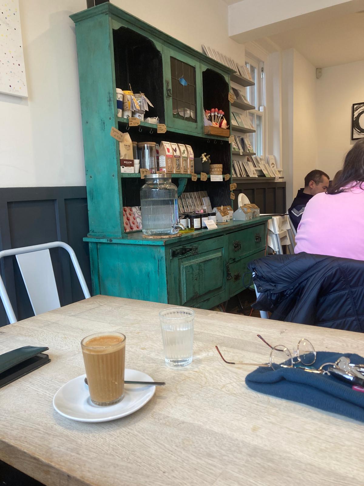 To me 94 Coffee Shop seemed to be a perfectly pleasant café of the flat-colour-tasteful-eggshell-feature-panelled-neutral-interior-meets-mild-minimalist-touches varietal. Metal chairs were crowded around long tables and a well-distressed green dresser was filled with purchasable arty bits. We ordered, planted ourselves on a wooden much-cushioned window seat and made ready.
