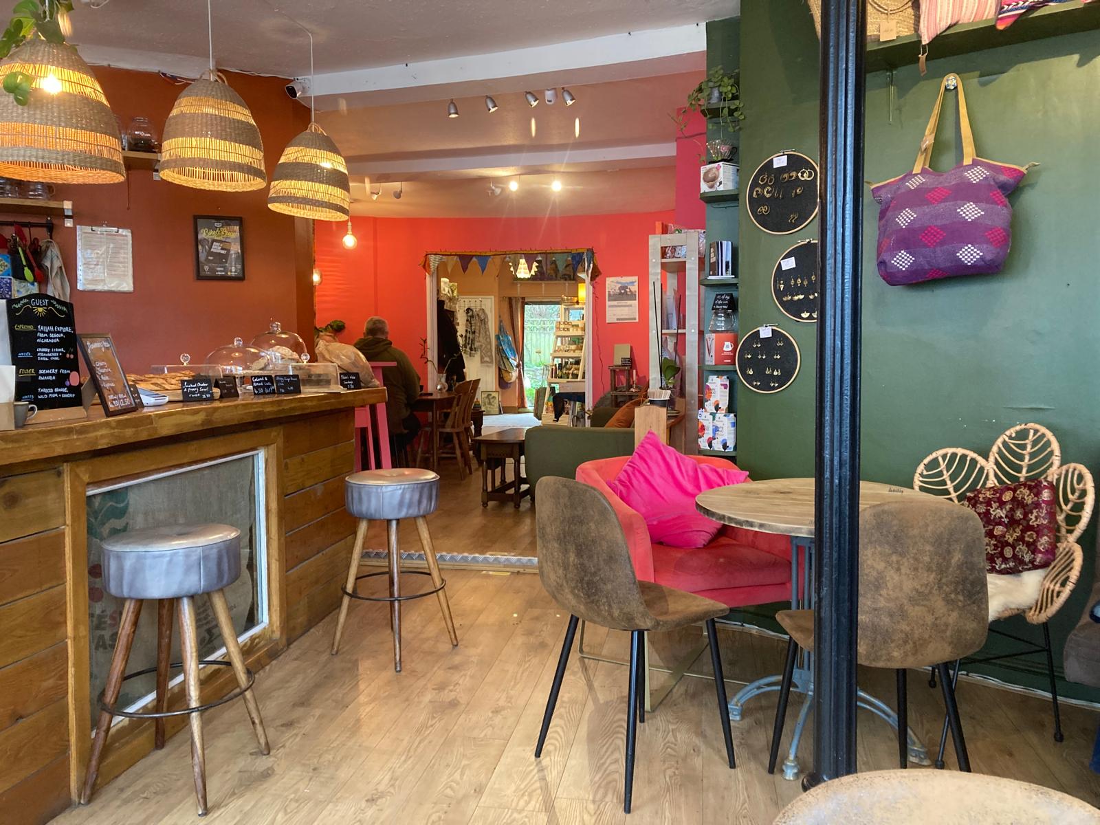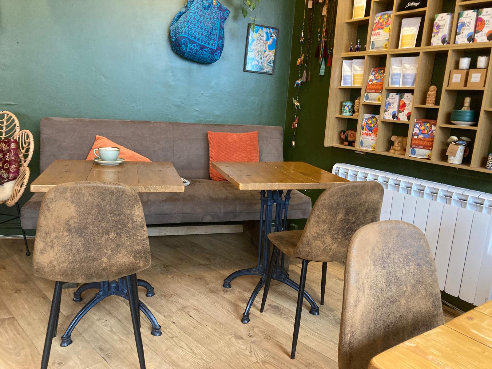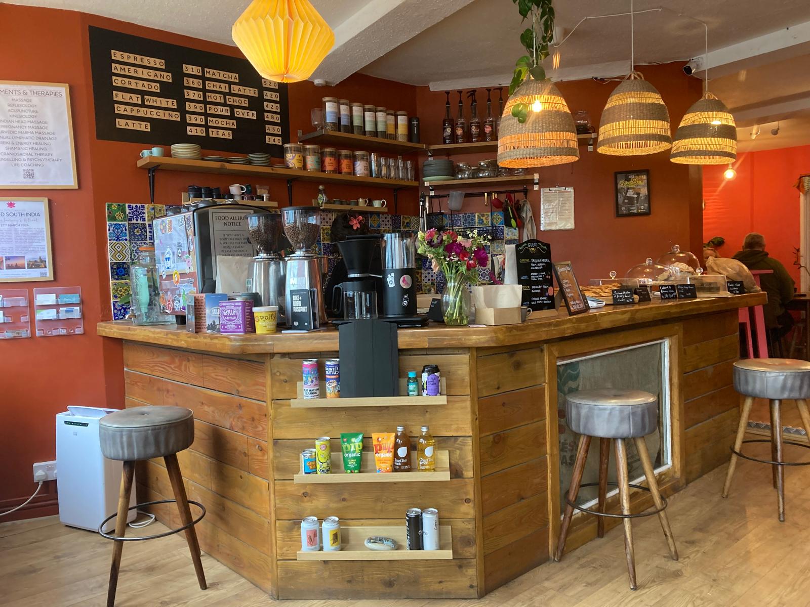It turned out to be a wonderful, friendly, idiosyncratic place. Calm of course, but also welcoming and efficient with the most naturally engaging and nicest staff of my visit. The Lotus Retreat is filled with assorted displays of various wellness kits, spiritual objects and chic hippy bits. Treatment options for both one’s body and soul abound but I advise you to look no further than the coffee, £3.80, which is narrowly but the best and most distinctive brew I had over these 4 establishments. There was a choice of other bean blends with one at an eye-watering £12.95 for 200g’s but this is probably due to supply chain fairness. The Lotus Tree interior décor is basically green and terracotta, then layered with assorted and unusual furnishings. A person can happily while away an hour or more in here as it’s exactly like being in an eccentric aunt’s living room. Believe me, I know.